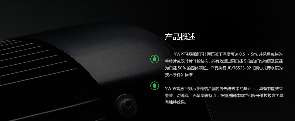 3、YW液下泵采用獨特的單葉片或雙葉片葉輪結構,大大提高了污物通過能力,能有效的通過泵口徑的5倍纖維物質與直徑為泵口徑約為50%的固體顆粒。