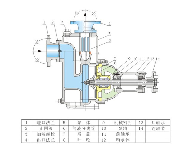 3、為使泵體內(nèi)能夠保持一定的儲(chǔ)存液,以達(dá)到較好的自吸能力和防止機(jī)械密封的干磨擦,必須使泵的