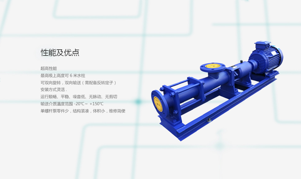 G型單螺桿泵是按迥轉(zhuǎn)嚙合容積式原理工作的新型泵種。主要工作部件是偏心螺桿(轉(zhuǎn)子)和固定的襯套(定子)。由于該部件的特殊幾何開頭分別形成單獨(dú)的密封容腔。介質(zhì)由軸向均勻推行流動(dòng)。內(nèi)部流速代低,容積保持不變。壓力穩(wěn)定,因而不會(huì)產(chǎn)品渦流和攪動(dòng)。 單螺桿泵被廣泛用于各行業(yè)輸送各類介質(zhì),恒壓連續(xù)運(yùn)行,無脈動(dòng),介質(zhì)輸送無破損,通過調(diào)節(jié)轉(zhuǎn)速改變流量從而達(dá)到計(jì)量的目的。本產(chǎn)品適合輸送具有以下特性的介質(zhì):固體含量高(Z大粒徑可達(dá)150mm)或無固體含量|各種粘度(1mPas-3百萬mPas)的介質(zhì)|觸變性和易膨脹性介質(zhì)|剪切敏感性介質(zhì)|磨蝕性介質(zhì)|有/無自潤滑性的介質(zhì)|腐蝕性介質(zhì)(pH=O-14)|粘結(jié)性介質(zhì)|有毒性介質(zhì)|流量大、壓力高·流量范圍從每小時(shí)幾毫升到500m3(2200gpm)·壓力范圍Z高可達(dá)48bar,特殊設(shè)計(jì)可達(dá)72bar。同一種傳動(dòng)部件可與四種不同設(shè)計(jì)的轉(zhuǎn)子/定子匹配,為您提供Z佳使用方案。
